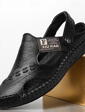 メンズ通気性のある中空フェイクレザーカジュアルシューズ、夏のアウトドア活動やビーチ旅行に最適な滑り止めコンフォートサンダル