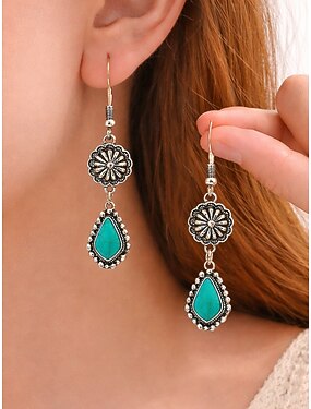女性用ボヘミアンターコイズ合金イヤリング、軽量ダングルジュエリー、ビーチでの休暇、普段使い、夏のアクセサリーに最適
