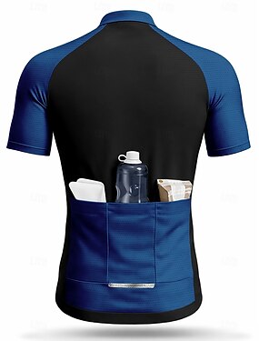 男性 サイクリングジャージー 幾何学模様 バイク 半袖 バイク シャツ ジャージー トップス 3つのリアポケット付き UV耐性 速乾性 ポケット付き フロントファスナー スポーツ ブルー 衣類