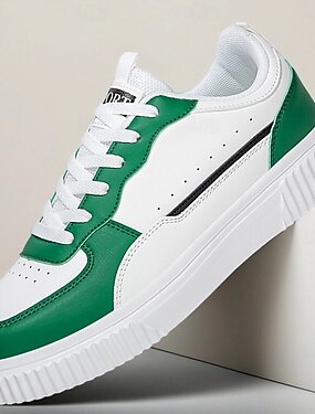 メンズのホワイト&グリーンカジュアルスニーカー - ウォーキング、カレッジ、普段使いに最適なクラシックなローカットのレースアップスポーツシューズ