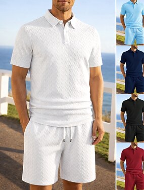 男性用 トラックスーツ ジョギングスーツ ワークアウトスーツ ドローストリング 2個 ソリッド 運動服セット 夏 春 ブラック ホワイト ジムトレーニング ジョギング ランニング 吸汗性 高通気性 半袖 スポーツ アクティブウェア マイクロエラスティック レギュラー