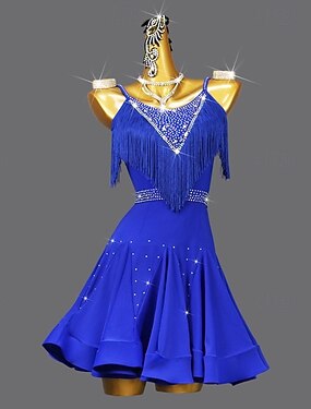 ラテンサルサダンス ドレス ラインストーン タッセル ピュアカラー 女性用 性能 訓練 ノースリーブ スパンデックス