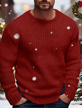 男性用 クリスマスジャンパー クリスマスセーター ホリデーセーター プルオーバーセーター リブ かぎ針編み ニット レギュラートップス ニット 平織り クルーネック 現代コンテンポラリー ワーク デイリーウェア 衣類 冬 ホワイト ルビーレッド S M L