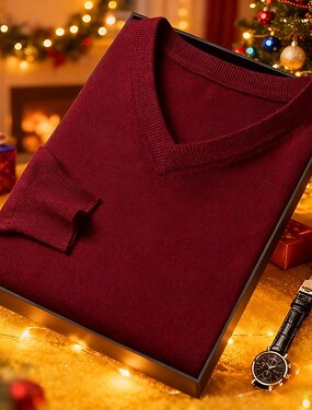 男性用 クリスマスジャンパー クリスマスセーター ホリデーセーター プルオーバーセーター ニットセーター リブ ニット レギュラートップス ニット 平織り Vネック ファッション ベーシック バケーション デイリーウェア 衣類 秋 冬 キャメル ワイン S M L