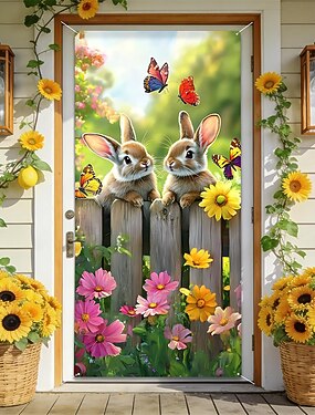 イースター ポスター ドアカバー 屋外バナー Rabbit かわいいスタイル 3D パーティー 寮 ティーンズルーム 大学寮 男の隠れ家フラットベッドルーム 撮影背景 ホームデコレーション