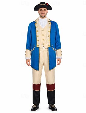 セット アメリカ建国250周年 レトリ/ヴィンテージ 中世 セット 長袖 ジョージ・ワシントン コロニアルスタイル 独立戦争 仮装 男性用 カーニバルコスチューム カーニバル アメリカ独立記念日 7月4日 大人 コート パンツ オールシーズン