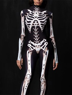 全身タイツ モーフスーツ キャットスーツ 肌着 スケルトン / スカル 成人 コスプレ衣装 コスプレ 怖いコスチューム 女性用 ゴースト 悪魔 カーニバル マスカレード