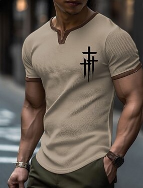 男性用 十字架 ワッフルシャツ Tシャツ 半袖 Tシャツ 3Dプリント クルーネック シャツ スポーツ 日常 レトリ/ヴィンテージ カジュアル 日常 ストリート ライトブルー ブラック カーキ色 夏 春 衣類 S M L XL XXL XXXL
