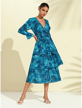 エレガントな花柄ジャカードシフォンミディドレス