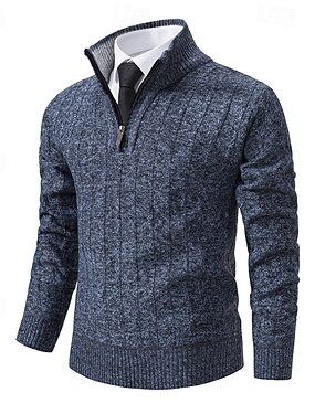 男性用 ニット プルオーバーセーター クォータージッププルオーバーセーター リブ ニット レギュラートップス ニット スリムフィット 平織り スタンドカラー ニット コンテンポラリー ビジネス カジュアル 衣類 秋 冬 ブルー ライトグレー M L XL