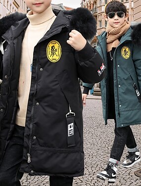 子供 男の子 ダウン パファージャケット アウターウェア レタード 長袖 コート 学校 クール 愛らしい ブラック グリーン 秋 冬 7-13歳