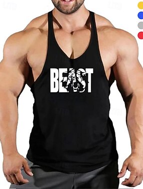 男性用 グラフィック レタード ワークアウトタンクトップ ランニングタンクトップ ジム用タンクトップ 夏 ノースリーブ 速乾性 吸汗性 ジムトレーニング アクティブトレーニング 運動 ブルー ブラック イエロー スポーツウェア アクティブウェア