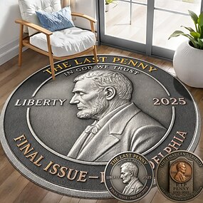 ファイナルセントトリビュート 1793-2025 リンカーン記念ペニーコインラグとコインセット 円形エリアラグ 120cm 記念コイン2枚付き 歴史的な米国ペニーデザイン 希少コレクターズエディション 愛国的なお土産ギフト de