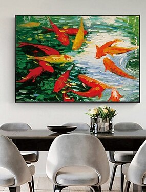 手作りの大きな鯉の絵、手描きの壁アート、鯉の絵、カラフルな鯉のアート、鯉の絵、壁アート、ナイフアート、家の装飾、装飾、動物の絵、金魚の絵