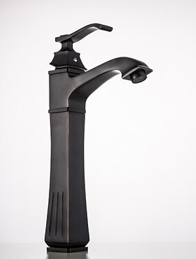 コンテンポラリー センターセット 滝状吐水タイプ セラミックバルブ シングルハンドル二つの穴 オイルブロンズ , 浴槽用水栓