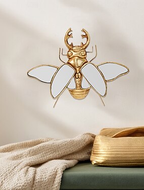 樹脂素材の金色の六面鏡、カブトムシ型の装飾壁掛け、表面に鏡が埋め込まれており、壁の装飾テーマパーティーやその他の装飾吊り下げ装飾に適しています。