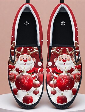 メンズ サンタクロース クリスマス スリッポンシューズ - 楽しい 3D プリントデザイン、快適で心地よく、クリスマスパーティーやお祝いの集まりに最適です。