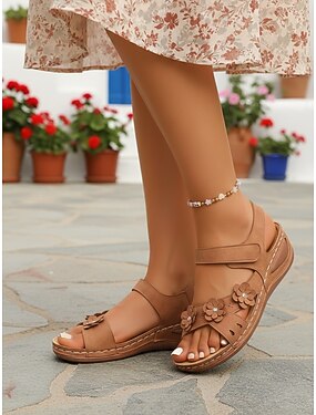 レディースホワイトフラワーコンフォートサンダル、リゾートガーデンウォーク、バケーションウェア、カジュアルなアウトドアウェアに最適なソフトクッションサマーシューズ