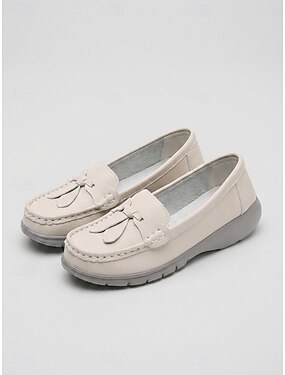 レディース ベージュ タッセル ローファー – ウォーキング、旅行、普段使いに最適な軽量クッション付きスリッポンシューズ &スマートカジュアルな服装