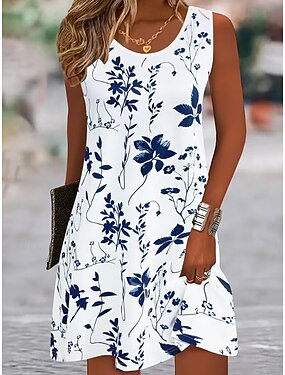 女性用 ひざ丈ドレス カジュアルドレス A ラインドレス 花柄ドレス サマードレス スタイリッシュ カジュアル デート レギュラー フラワー ノースリーブ Vネック スクープネック ブラックとホワイト ライトピンク ホワイト ルビーレッド 夏 春