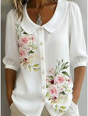 女性用 シャツ ボヘミアンシャツ フラワー グラフィック エレガント ボヘミア 旅行度假风 ピーターパンカラー レギュラートップス カジュアル 日常 祝日 ホワイト 夏 春