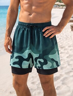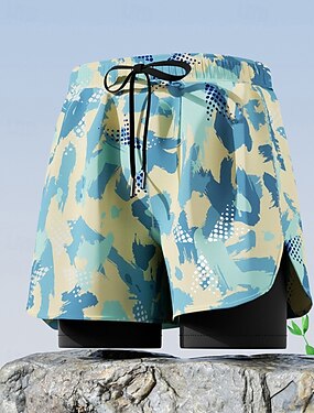男性用 光 スイムショーツ スイムトランク カモフラージュ ドローストリング 2 イン 1 コンプレッションライナー付き 速乾性 弾性ある 高通気性 ノースリーブ ボトムズ サーフィン ウォータースポーツ 水泳 夏