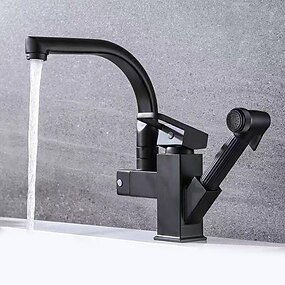 ステンレス鋼のキッチン蛇口、スプレー付き引き出し、360°回転スパウト容器タップ、冷温ホース付き