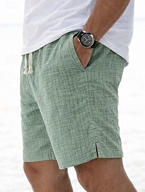 男性用 ショーツ サマーショーツ ビーチショーツ カジュアルショーツ ドローストリング 弾性ウエスト 平織り 純色 テクスチャード加工 履き心地よい 高通気性 膝丈 日常 アウトドア ストリートウェア ファッション レトリ/ヴィンテージ ブルー グリーン マイクロエラスティック