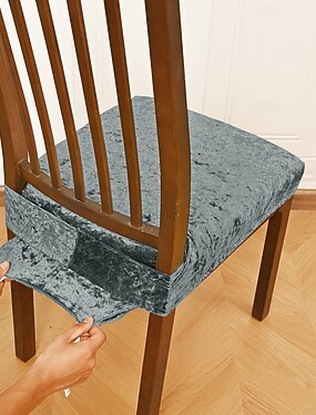 ダイニングルーム用シートカバー、ストレッチベルベット、ゴールドダイヤモンド生地、ダブルエラスティックスツールスリップカバー、バックルとタン付き、滑り止めチェアクッションカバー、ホテル宴会用、室内装飾