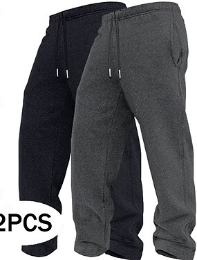 男性用 スウェットパンツ フリースパンツ ズボン カジュアルパンツ ストレートレッグスウェットパンツ ドローストリング 弾性ウエスト マルチパック 平織り 履き心地よい ウォーム 全長 アウトドア 日常 お出かけ ファッション エスニック ルーズフィット ブラック+ネイビーブルー ブラック+ライトグレー