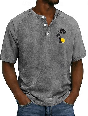 男性用 ビンテージ 洗浄済み コットンシャツ ヘンリートップ ヴィンテージウォッシュトップス 半袖 ヴィンテージ デザイナー カジュアル カジュアル 日常 アウトドア 夏 春 オールシーズン ライトブルー パープル グレー ヘンリーカラー ヘンリー ヘンリーTシャツ