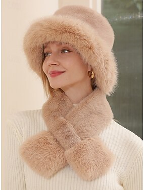 女性用フェイクファー帽子とスカーフのセット – さまざまな色があり、冬に柔らかくて心地よく、寒い季節のファッションに最適です。