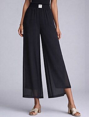 女性用 ズボン スーツ 旅行度假风 ファッション カジュアル 普段着 足首丈 ハイウエスト 平織り ワイドレッグ ハイスプリット 弾性ウエストバンド 履き心地よい ライトウェイト ソフト 伸縮性なし カジュアル ストリートウェア ワーク ブラック 夏 春 秋 ルーズフィット