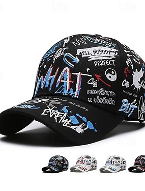 男性用 ベースボールキャップ 日よけ帽 ブルー ブラック ポリエステル パッチワーク 3Dプリント ファッション ストリートファッション カジュアル カジュアル 日常 アウトドア メッセージ 日焼け防止 サンスクリーン 通気性
