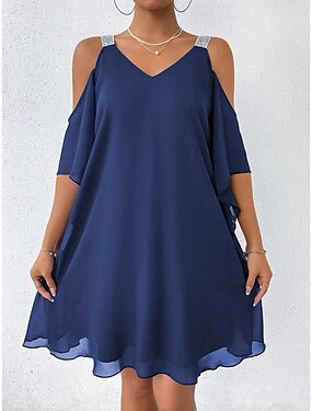 女性用 ミニドレス シフトドレス カジュアル 日常 ルーズフィット 平織り 七分袖 Vネック ワイン パープル ダークブルー アプリコット 夏