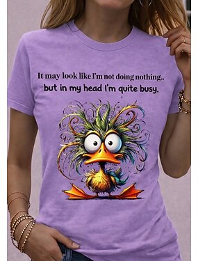 レディースTシャツ 面白いユーモア引用句プリントグラフィック動物文字スタイリッシュクラシックカジュアル半袖クルーネックラウンドネックレギュラートップスデイリー週末ライトベージュライトパープルパープル