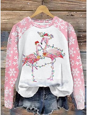 クリスマス レディース 雪の結晶 プルオーバー グラフィック 暖かい クラシック カジュアル 長袖 クルーネック レギュラー トップス ホーム ストリート デイリーウェア プリント グリーン 秋 冬