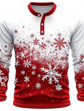 男性用 クリスマス スノーフレーク柄 ヘンリーシャツ 長袖 ファッション かわいいスタイル 日常 カジュアル 祝日 お出かけ 冬 春 & 秋 レッド ヘンリー ヘンリーTシャツ