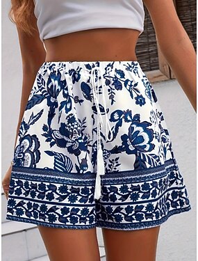 女性用 スウェットパンツ チノパン ショーツ 旅行度假风 ヴィンテージ ボヘミアン ショート ハイウエスト フラワー グラフィック ポケット 弾性ウエストバンド プリント 快適 履き心地よい ソフト マイクロエラスティック アウトドア ストリート ブルー グリーン 夏 春 秋 ルーズフィット