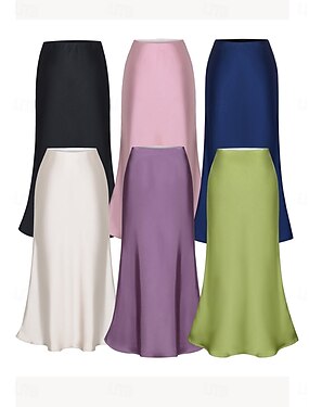 女性用 サテンスカート エレガント ヴィンテージ ファッション 光沢タイプ マキシ ハイウエスト スカート 平織り フリル パッチワーク 伸縮性なし 日常 オフィス / キャリア ブルー グレー アメジスト ブラック 夏 スパンデックス サテン