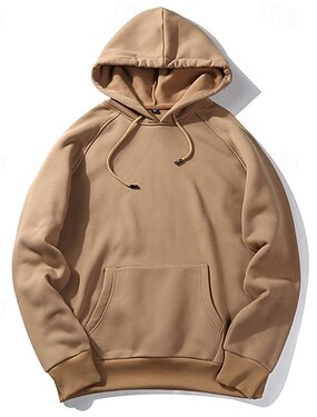 男性用 パーカー フリースパーカー アプリコット ブラック ホワイト イエロー アーミーグリーン フード付き 平織り ドローストリング ポケット スポーツ 日常 祝日 ポリエステル ストリートファッション ベーシック カジュアル 秋 冬 衣類 パーカー トレーナー