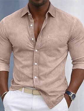 男性用 シャツ カジュアルシャツ コーデュロイシャツ ボタンアップシャツ ピンク アプリコット ライトブルー 半袖 平織り シャツカラー カジュアル 日常 カラーブロック 衣類 エレガント ファッション カジュアル スマートカジュアル