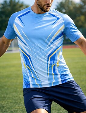 男性用 サッカーユニフォーム 幾何学模様 アルゼンチン プルオーバートップス アスレチックTシャツ 夏 カラーブロック 半袖 UPF 50 速乾性 吸汗性 高通気性 トーナメント サッカー カジュアル ランニング ジョギング しつけ用品 ブルー スポーツウェア アクティブウェア