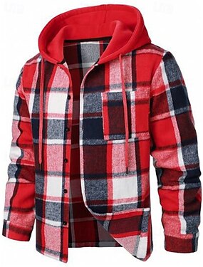 男性用 シャツジャケット カジュアルジャケット フーディージャケット シャケット バケーション 日常 高通気性 ポケット 春 秋 チェック ファッション クラシック フード付き レギュラー ブラック ルビーレッド オレンジ グリーン カーキ色 ジャケット