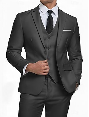 男性用 ビジネススーツ カジュアル パーティー ブラック バーガンディー 春、夏、秋、冬 スーツ ノッチドラペル 日常 フォーマル ソリッド スリムフィット 3点セット シングルブレスト 二つボタン