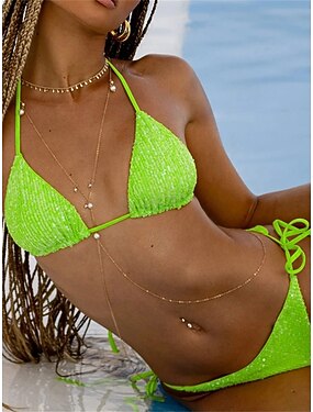 女性用ビキニ2ピース水着 チーキー スリム バックレス バカンス ビーチウェア 単色 Vネック ノースリーブ 水着