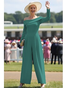ジャンプスーツ フロア丈 ダービードレス マダムドS 長袖 オフショルダー エレガント ケンタッキーダービー 〜と ソリッドカラー