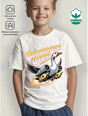 コットン 子供 男の子 ブルー ブラック ホワイト ボンボンビーニ・グシーニ グラフィック Tシャツ ブラウス クルーネック 半袖 アウトドア 日常着 ファッション ストリートファッション デザイナー プリント 夏