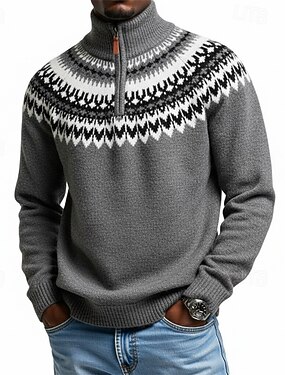 男性用 ニット クォータージップセーター ニットセーター ニットプルオーバー リブ ニット レギュラートップス ニット 幾何学模様 クォータージップ ヴィンテージ ファッション カジュアル デイリーウェア 衣類 秋 冬 ブラック ブラウン M L XL