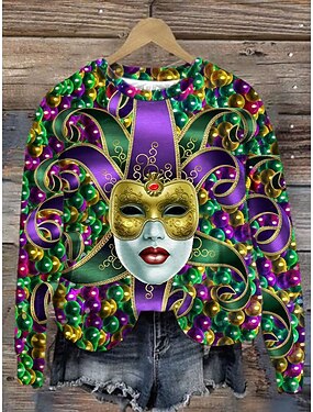 カーニバル レディース プルオーバー スウェットシャツ グラフィック シャムロック クラシック カジュアル ロングスリーブ クルーネック レギュラートップス パーティー イブニングウェア パーティーアウトフィット プリント ブラック イエロー パープル グリーン スプリング 秋